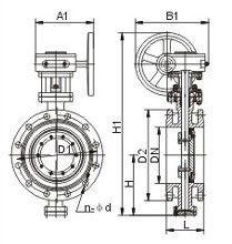 D343W硬密封不銹鋼法蘭蝶閥--主要連接及外形尺寸: